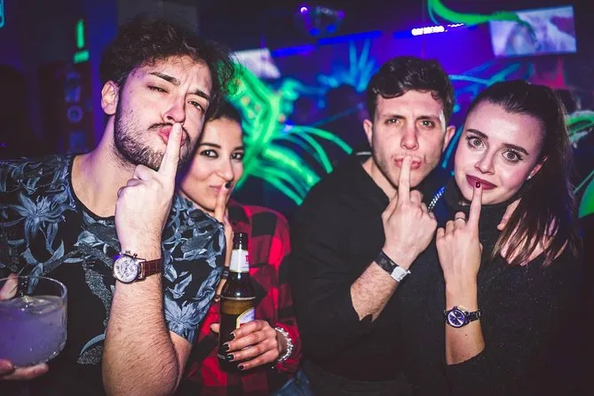 Únete a la ruta de bares más loca de Madrid con chupitos de bienvenida en cada parada, juegos divertidos con guías locales, entrada a bares animados en Sol y termina bailando en una discoteca cerca de Gran Vía. Haz nuevos amigos de todas partes y crea recuerdos que durarán mucho después del amanecer.