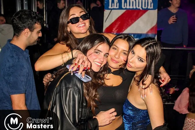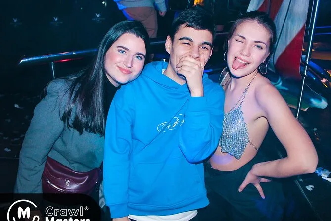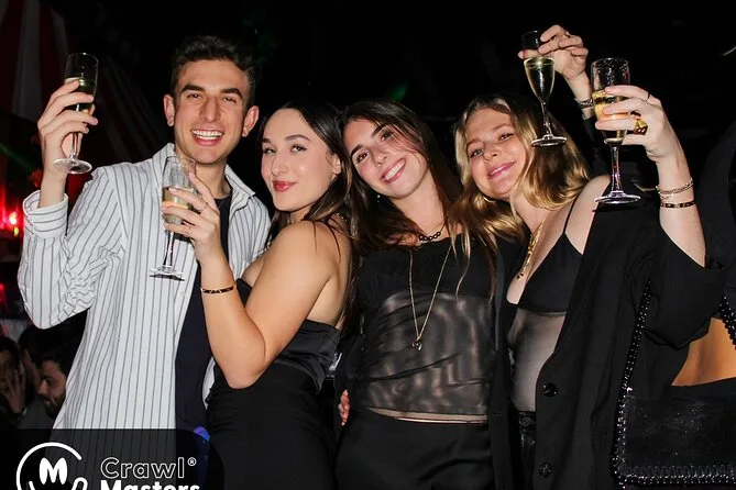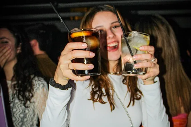 Tu noche incluye entrada gratuita a tres bares animados y una discoteca, pulseras VIP para no hacer cola, chupitos de bienvenida en cada parada, descuentos en bebidas toda la noche y un show sorpresa en vivo—además de muchas oportunidades para hacer nuevos amigos de todo el mundo mientras tu guía experto se encarga de todo.