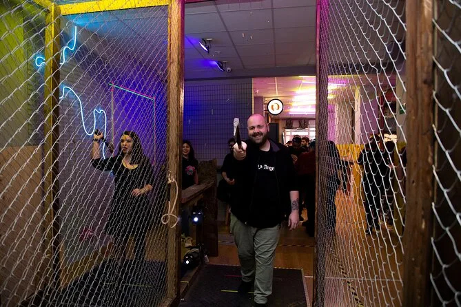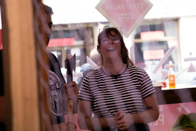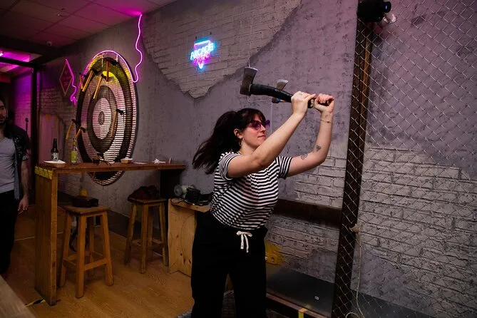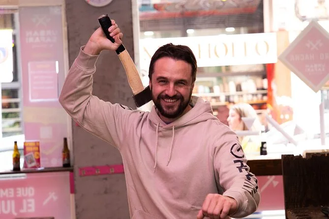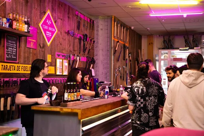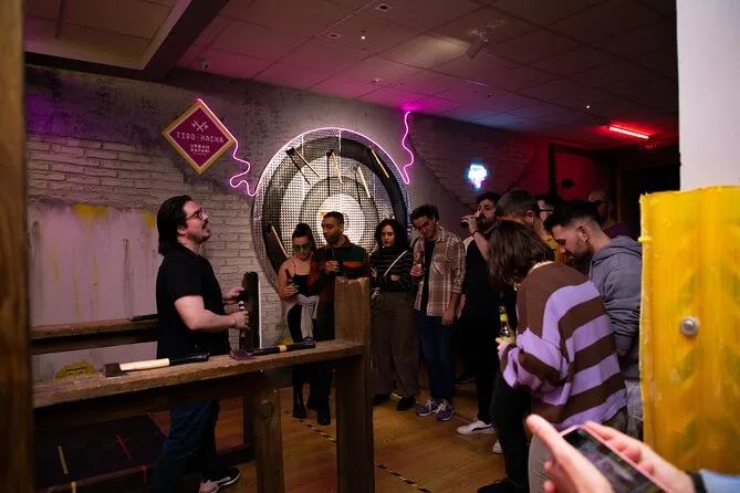 Vive una sesión de lanzamiento de hacha en un local animado de Madrid con un guía local que mantiene el ambiente divertido y motivador. Aprende la técnica, compite con amigos, disfruta de una bebida en el bar entre rondas y, quién sabe, quizá consigas tu primera diana — una experiencia para recordar y reír mucho después.
