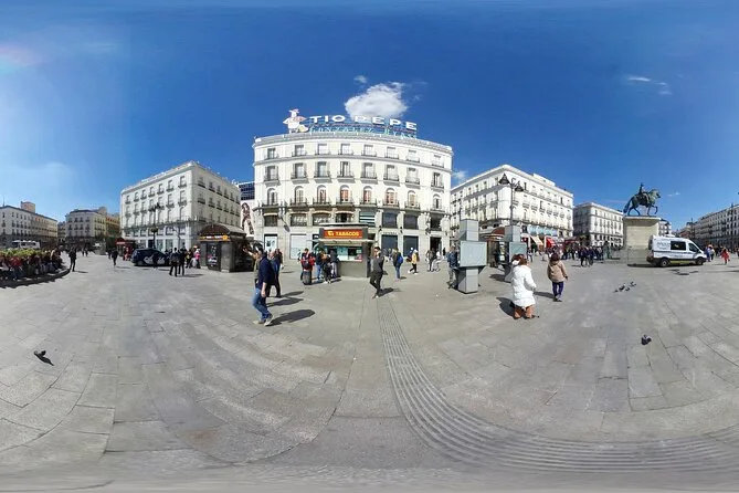 Tu día incluye una guía local oficial que te acompaña por el centro de Madrid con gafas de realidad virtual en cada parada; explorarás plazas principales como Puerta del Sol y Plaza Mayor caminando—la ruta es apta para cochecitos y el transporte público está siempre cerca si lo necesitas.