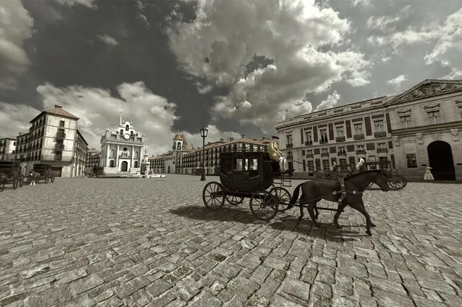 Sumérgete en la historia de Madrid en Puerta del Sol con gafas de realidad virtual y una guía oficial que te llevará por Plaza Mayor, Plaza de la Villa y el Palacio Real. Siente el empedrado bajo tus pies mientras los siglos giran a tu alrededor y mira las plazas de Madrid con otros ojos.