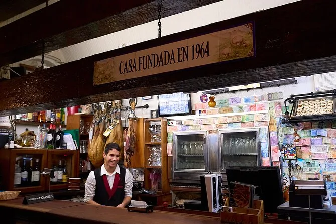 Tu tarde incluye cinco paradas gastronómicas seleccionadas en el casco antiguo de Madrid y el Barrio de las Letras, con tres bebidas locales como vino Rioja; acceso sin colas para los clásicos bocadillos de calamares; práctica de corte de jamón ibérico en una bodega centenaria; degustaciones de arroces creativos; chocolates artesanales con chocolate caliente; además de un guía local en inglés que te llevará desde el Mercado de San Miguel hasta la Plaza Mayor, todo a un ritmo tranquilo y apto para todos.
