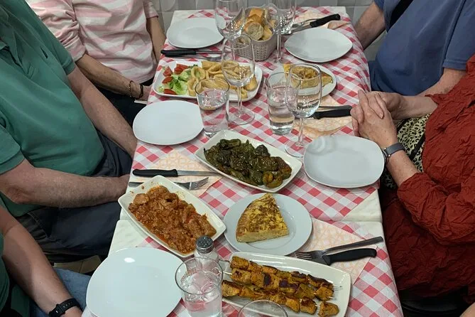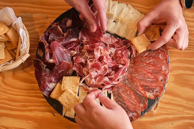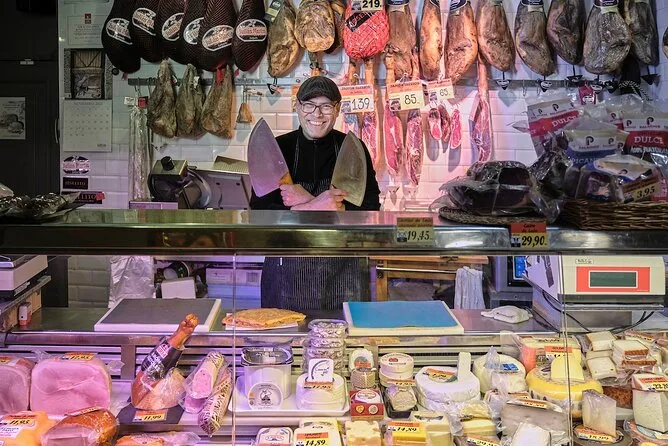 Tu mañana incluye seis paradas para degustar en Malasaña: churros frescos con café para empezar, jamón ibérico y aceite de oliva orgánico en el mercado, además de tapas clásicas como gambas al ajillo y aceitunas. Incluye dos bebidas — cerveza o tinto de verano — y opciones sin alcohol. Te guiará un local que conoce a todos, desde panaderos hasta carniceros.