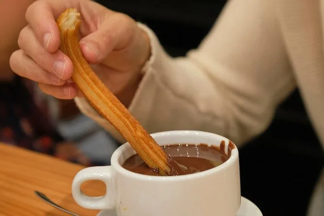 No esperaba sentirme tan en casa en Malasaña — al fin y al cabo, es solo un barrio, ¿no? Pero cuando nuestra guía Carmen saludó al panadero al pasar (¡y ellos recordaban su pedido de café!), me di cuenta de que esto es vida real, no solo un punto en el mapa. El aire aún estaba fresco cuando entramos en esa pequeña churrería. Primero llegó el aroma a aceite caliente y azúcar. Intenté decir “porras” como ella, pero seguro que lo dije mal — Carmen sonrió igual. Mojar esos churros crujientes en chocolate espeso fue más desordenado de lo que imaginaba. Pero valió la pena.