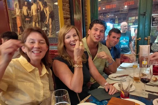 Tu noche incluye visitas guiadas a cuatro bares o restaurantes en el centro de Madrid, con la primera bebida y tres degustaciones incluidas en la primera parada; después eliges qué más probar con su sistema de pago por consumo. Además de muchos consejos para tu estancia, recibirás recomendaciones personales sobre las tradiciones gastronómicas españolas—y sí, siempre hay tiempo para otra ronda si quieres antes de volver a casa satisfecho.