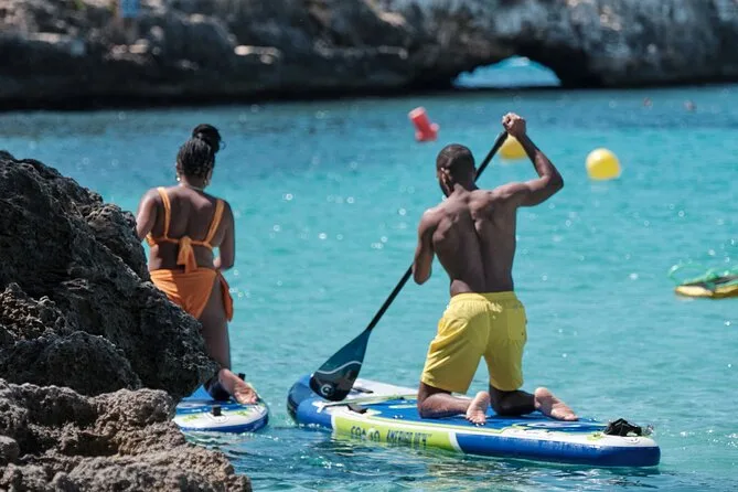 Tu día incluye recogida cerca de Santanyí o Palma (según acuerdo), todo el equipo de SUP y snorkel listo en cada parada, sombrillas para sombra en días calurosos, neveras con bebidas bien frías y bocadillos para el picnic bajo los pinos, además de juegos de playa para los más competitivos antes de regresar con el pelo salado al atardecer.