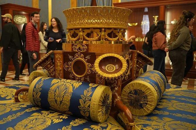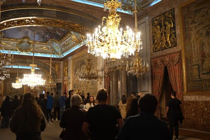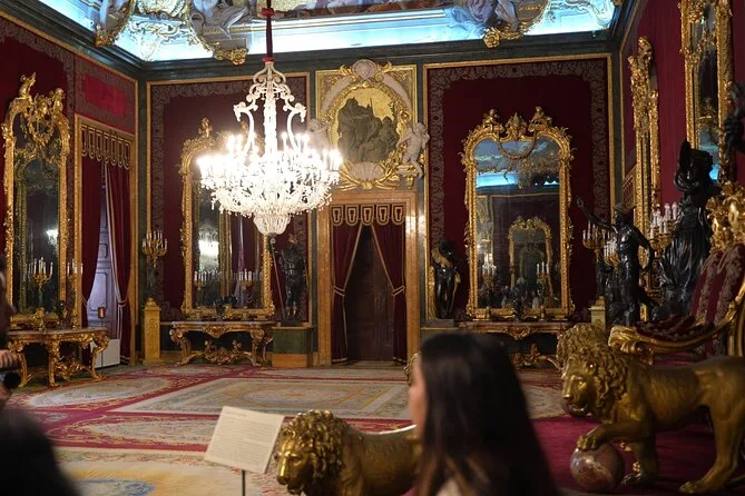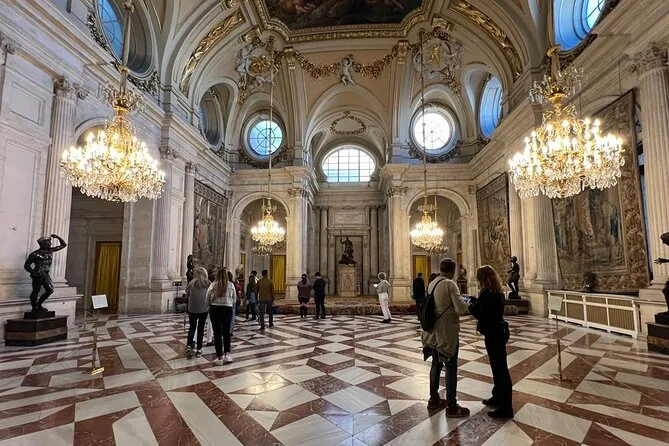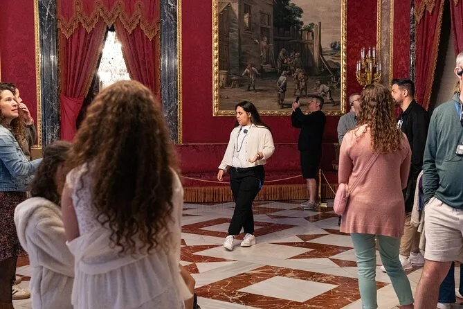 Únete a un grupo pequeño en la Plaza de Oriente de Madrid y sigue a un guía local certificado para entrar sin colas al Palacio Real. Escucha historias de ceremonias reales, admira obras de Giordano y Goya, pasea por salones llenos de tapices y armaduras, y termina en jardines tranquilos — una historia que sentirás en la piel.