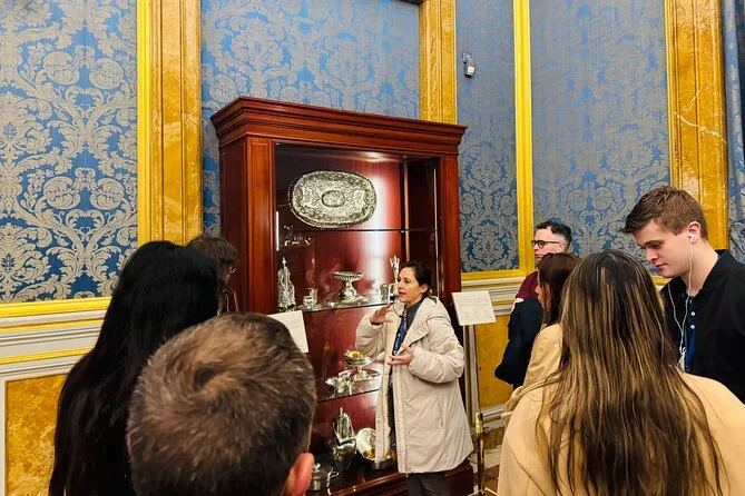 Todo empezó cuando Carmen nos saludó desde debajo de la estatua de bronce en la Plaza de Oriente — tenía una sonrisa rápida, como si ya nos hubiera leído. La plaza estaba animada pero sin agobios, palomas revoloteando entre los pies de la gente, y el aire olía a castañas asadas de un carrito cercano. Carmen repartió los auriculares (“para que me escuchéis bien con tanto ruido,” dijo) y nos llevó directo, sin hacer fila, por la puerta del palacio. No voy a negar que me sentí un poco orgulloso de colarme así.