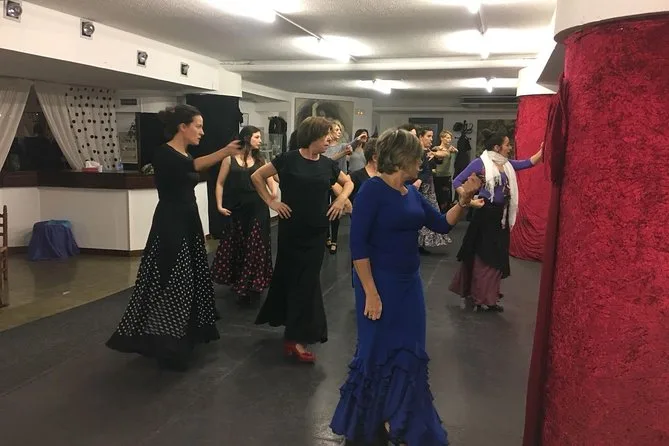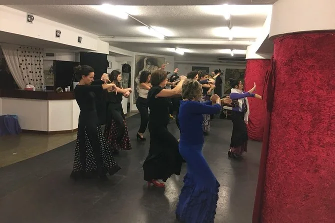 Tu día incluye una clase privada de flamenco adaptada a tu nivel en un estudio local de San Sebastián con una profesora experta que comparte técnica e historia; apto para todas las edades con supervisión adulta; horarios flexibles de lunes a viernes; fácil acceso en transporte público; se permiten animales de servicio; también se acomodan bebés.