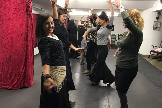 A mitad de la clase hizo una pausa para contar de dónde viene el flamenco—Andalucía, hace siglos, con todas esas culturas mezclándose. Nos dijo que la UNESCO lo llama “arte vivo.” Me gustó esa expresión; encaja perfecto. Incluso nos dejó probar algunos movimientos a nuestro ritmo (casi me tropiezo una vez, pero nadie se fijó). Duró como hora y media, ¿quizá? El tiempo voló—pensaba que olvidaría todo, pero la música se queda contigo.