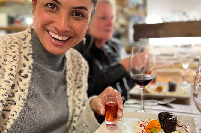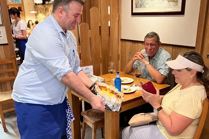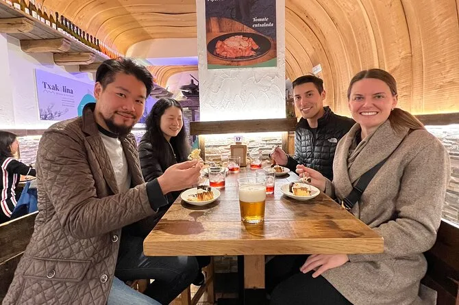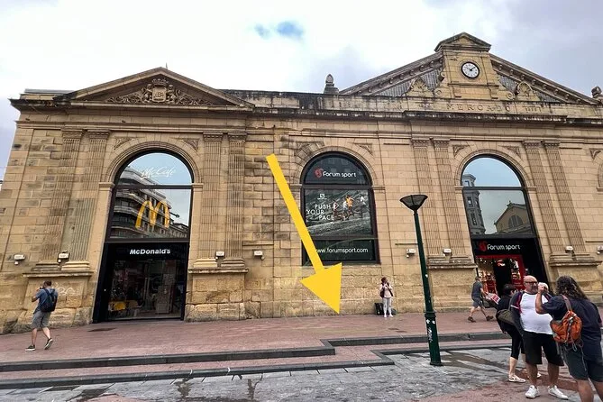 Tu día incluye degustaciones guiadas en el Mercado de la Bretxa (jamón ibérico, quesos y aceitunas), varias paradas de pintxos tradicionales y modernos acompañados de cuatro vinos locales o sidra (también hay bebida sin alcohol), asientos reservados en cada lugar para que descanses entre bocados y un postre con licor vasco para cerrar. Además, recibirás una guía con consejos para seguir explorando bares y restaurantes por tu cuenta después del tour.