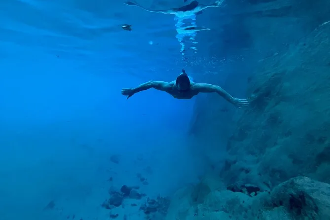 La Laguna Azul está calentita todo el año—25°C aunque haga frío afuera—y tan cristalina que ves tus dedos moverse bajo el agua. Algunos se lanzaban desde las rocas; otros flotaban o dejaban que los pececillos les mordisquearan los pies (yo intenté no gritar). La comida fue relajada—podíamos quedarnos en la casa de Mike o ir al pueblo a algo más típico (yo pedí una tortilla española en un café donde el dueño nos habló de fútbol). Las paredes del cañón son enormes; el eco te invita a gritar solo para escucharte a ti mismo.