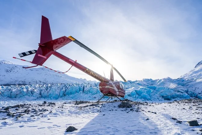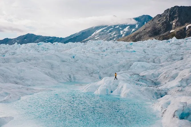 Vuela en helicóptero desde Anchorage hacia el salvaje glaciar Knik, con tres aterrizajes: uno sobre el glaciar para vistas panorámicas, otro junto a una imponente pared de hielo y el último sobre el hielo azul milenario. Con un guía local, escucharás historias y explorarás pozas de deshielo y grietas de cerca—experiencias que te quedarán para siempre tras dejar Alaska.