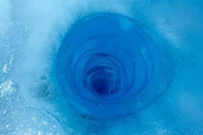 El primer aterrizaje fue en una cresta alpina sobre el glaciar — el viento mordía mis mejillas incluso a través de la chaqueta. Cuando las hélices dejaron de girar, se hizo un silencio extraño. Solo el crujir de la nieve bajo las botas y ese leve olor mineral que tiene el hielo antiguo. Mike nos enseñó a reconocer las grietas (yo me quedé bien atrás) y contó una historia sobre un alce que se quedó atrapado una vez — se rió, pero estoy seguro de que no bromeaba. Luego volamos hacia una pared de hielo enorme, de unos treinta metros de altura. Se escuchaba el agua filtrándose por dentro, como si el glaciar respirara.