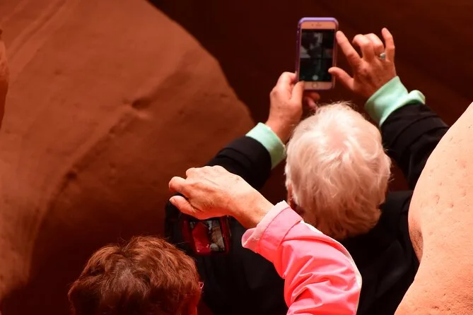 La caminata hacia Secret Antelope Canyon es corta — ¿unos diez minutos? — pero suficiente para que tus ojos se adapten del sol fuerte a ese extraño resplandor rosado dentro. Las paredes se curvan sobre ti como cera derretida, frescas al tacto (yo lo comprobé; terminé con arena en la manga). Talia se detuvo en un punto donde la luz hacía que todo pareciera casi púrpura. Nos contó historias de su abuela sobre cómo las sombras cambian según la estación. Intenté sacar una foto, pero la verdad es que ninguna imagen hace justicia a estar ahí. Nos quedamos en silencio un momento — hasta el que había estado grabando todo guardó el móvil.