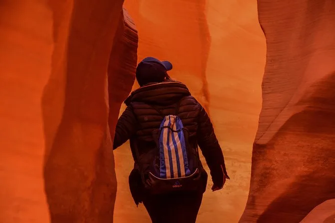 Tu día incluye transporte en 4x4 por tierras Navajo con todos los permisos incluidos; caminatas guiadas por Secret Antelope Canyon y acceso a un mirador privado en Horseshoe Bend antes de regresar al punto de partida cerca de Page.