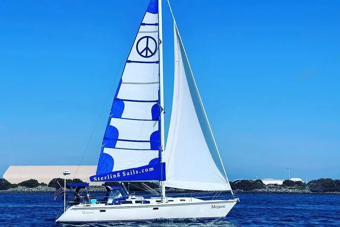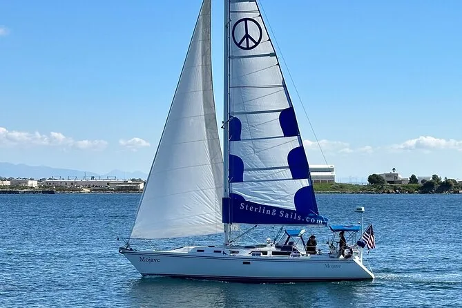 Hay un momento especial al subir al Mojave — te quitas los zapatos, la cubierta está tibia bajo tus pies, y la brisa de la bahía de San Diego trae ese toque justo de sal y protector solar. La vela tiene un gran símbolo de paz bordado que no me esperaba. La capitana Liz sonrió al verme mirarlo y dijo: “Aquí nos gusta mantener la calma.” Y no bromeaba. En minutos estábamos navegando lejos de la marina, el ruido de la ciudad quedaba atrás y las gaviotas volaban como si fueran dueñas del lugar.