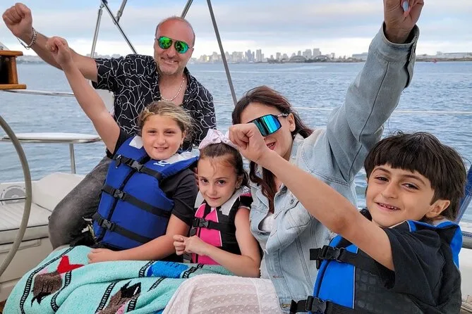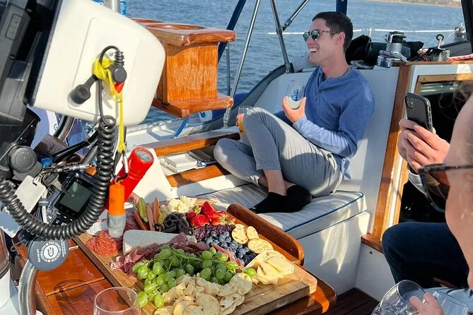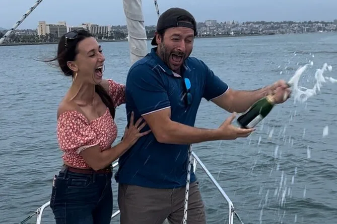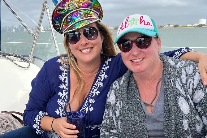 Tu charter privado de dos horas incluye recogida en el muelle de la marina en la bahía de San Diego con la capitana Liz al mando; snacks, refrescos, agua embotellada y una botella de champagne por grupo; baño a bordo; música por altavoz; espacio en el refrigerador si traes más cosas; y tiempo para relajarte o tomar fotos en la ruta que elijas antes de regresar a tierra.