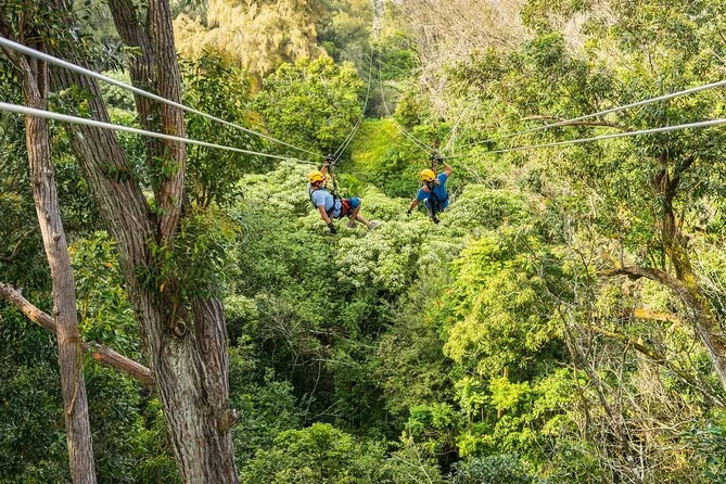 Tu día incluye todo el equipo de seguridad necesario: casco, guantes y arnés; pausas para beber agua; guía local certificado que comparte historias sobre la naturaleza y cultura del norte de Kohala; además de impuestos y tasas incluidos para que solo te preocupes por disfrutar.