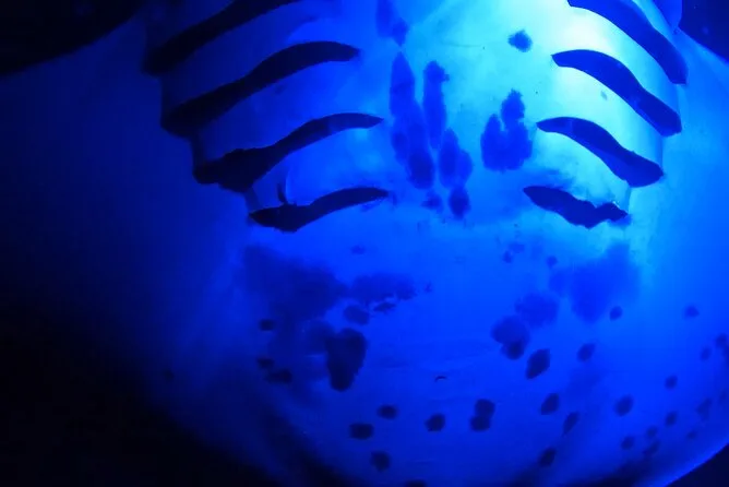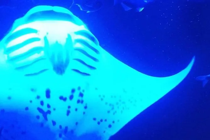 Tu noche incluye transporte en barco ida y vuelta desde Kailua-Kona al sitio de snorkel con todo el equipo listo — máscara, aletas, traje térmico y flotador — además de la guía de expertos locales que comparten sus conocimientos en vivo. Después de nadar con mantarrayas, te calentarás con snacks ligeros y agua antes de regresar a tierra.
