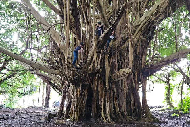 Pasamos mucho tiempo en el mirador del Kilauea. Hay un silencio especial cuando miras dentro del cráter — aunque haya turistas, se siente raro de tan tranquilo, solo el viento y los pájaros. El azufre en el aire me hizo cosquillas en la nariz (no fue mi parte favorita), pero se sentía auténtico, como si estuvieras parado en un lugar vivo. Más tarde, en Rainbow Falls, la luz del sol tocó el rocío justo y sí, apareció un arcoíris entre la bruma. Un par de niños locales trepaban un enorme árbol banyan cerca — uno gritó que intentaría columpiarse de una raíz, pero yo me rajé. Quizá la próxima vez.