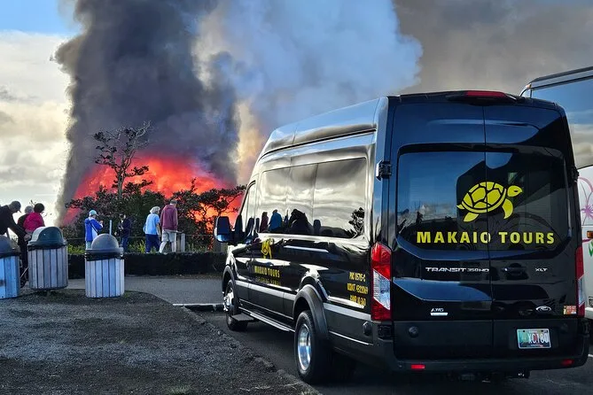 El tour es de día completo con varias paradas en Hilo, incluyendo volcanes, cascadas, playas y mercados.