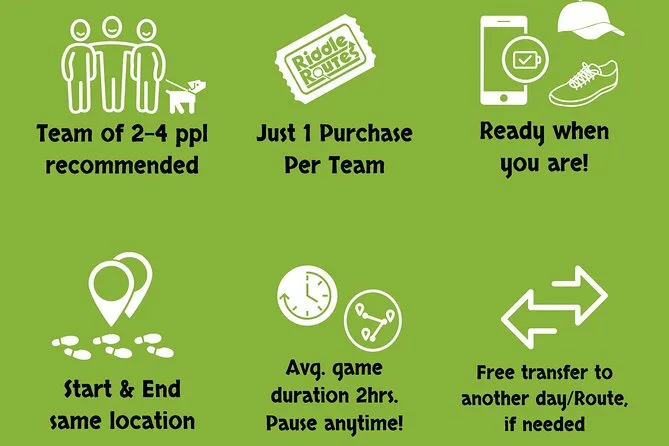 Obtendrás acceso completo a la app del juego móvil en un teléfono para tu equipo (2–4 jugadores). Hay asistencia local en vivo disponible por teléfono si la necesitas durante el recorrido.