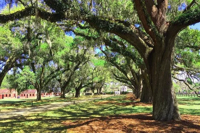 Tu día incluye entrada completa a Boone Hall Plantation: tours guiados por la planta baja de la mansión, paseo en tractor por 738 acres (según clima), acceso a nueve cabañas originales de esclavos con exhibiciones de Historia Negra, presentación en vivo de la cultura Gullah única en el Lowcountry de Charleston, caminatas por jardines llenos de color en temporada, visitas al Museo Gin House con tres siglos de historia, un nuevo tour por los establos y estacionamiento gratuito.