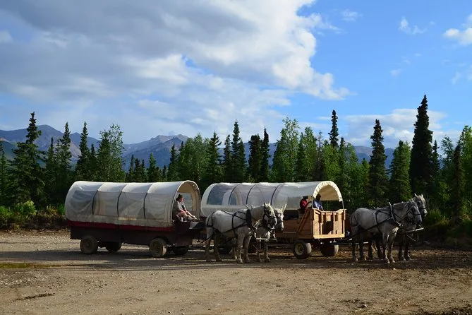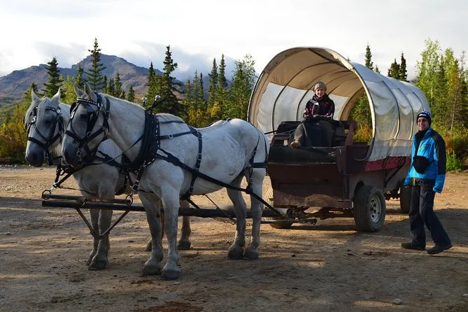 Recorrerás el borde salvaje de Denali en carreta tirada por caballos con un guía local, avistando fauna y escuchando historias antiguas de Alaska antes de disfrutar una comida típica en plena naturaleza. Prepárate para botas embarradas, aire puro de montaña y relatos compartidos junto a un estofado caliente—un día que no olvidarás.