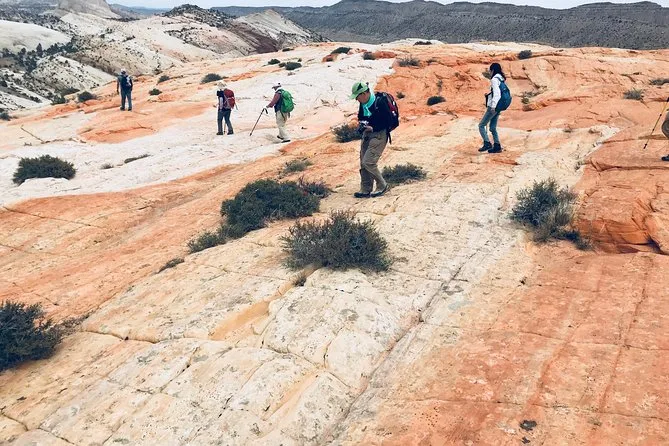 Tu día incluye recogida en Kanab, senderismo guiado hasta la cima de Yellow Rock, agua embotellada para mantenerte hidratado y almuerzo sobre las rocas con vistas espectaculares.