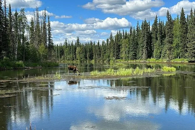 Sumérgete en aguas termales naturales bajo el cielo de Alaska, recorre las esculturas de hielo del Museo Aurora (quizá pruebes un Appletini) y observa la fauna en los caminos boscosos desde Fairbanks. Con recogida en hotel y guía local que comparte historias, esta excursión te deja calentito mucho después de volver.