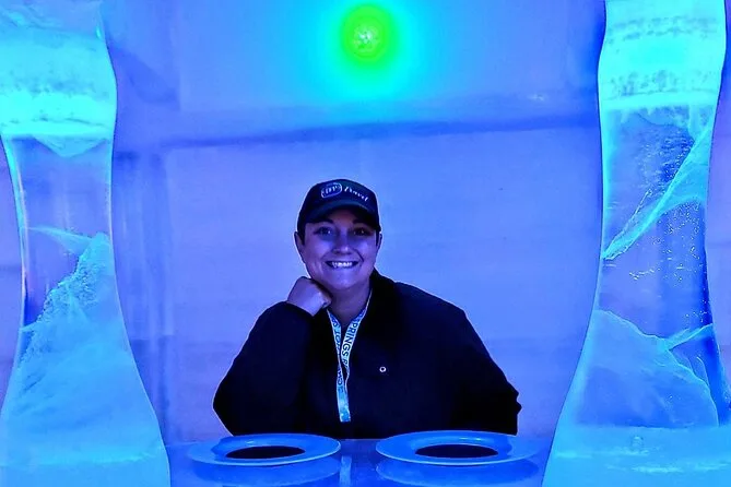 En Chena Hot Springs Resort, todo olía a piedra mojada y agujas de pino. Nuestra guía Li repartió primero las entradas para el Museo de Hielo Aurora — sonrió cuando alguien preguntó por el Appletini (al parecer es algo típico aquí, servido en un vaso de hielo). Dentro, mis dedos se entumecieron solo con sostener la copa, pero lo probé igual. Las esculturas brillaban en azul bajo las luces; había un eco silencioso al pasar junto a ellas, como estar dentro de una catedral congelada. Probablemente tomé demasiadas fotos, pero ninguna captura esa sensación de frío en la cara.