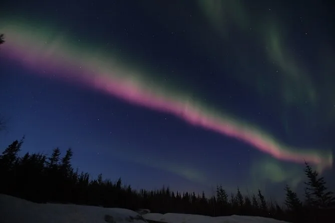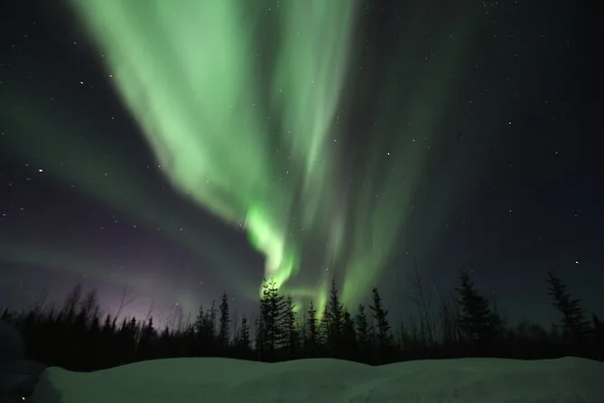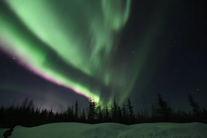 Confieso que parte de mí temía no ver nada (te avisan que el clima cambia rápido aquí). Pero aunque no hubiera pasado nada, estar ahí con una taza de té caliente mientras la nieve golpeaba el techo ya tenía su propia magia. Si quieres fotos con la aurora, las hacen por un extra — pero sinceramente, me alegro de haberme dedicado solo a mirar en vez de pelear con la cámara. El regreso a Fairbanks a las 2am fue como un sueño; no dejaba de pensar en lo pequeños que somos bajo todo ese cielo.