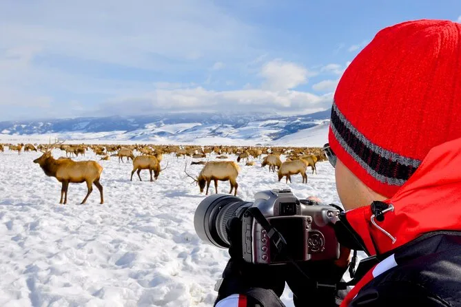 Recorrerás los rincones más salvajes de Grand Teton en un vehículo safari cómodo, buscando alces, ciervos o incluso lobos mientras tu guía local comparte historias reales y te presta binoculares profesionales. Disfruta la luz dorada al atardecer, snacks y bebidas calientes a bordo — y esos pequeños instantes en que sientes que formas parte de algo mucho más grande.