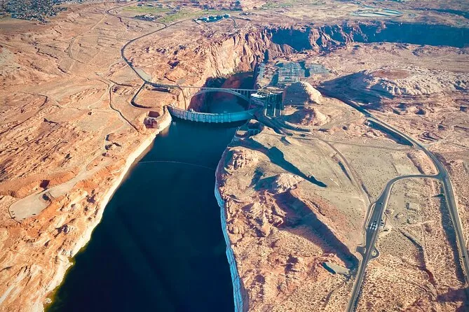 También sobrevolarás la costa serpenteante de Lake Powell y la presa Glen Canyon, además de cañones estrechos llenos de agua que solo se ven desde el aire.