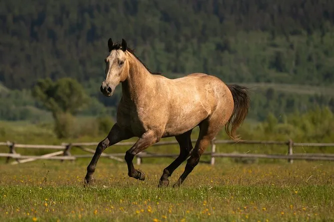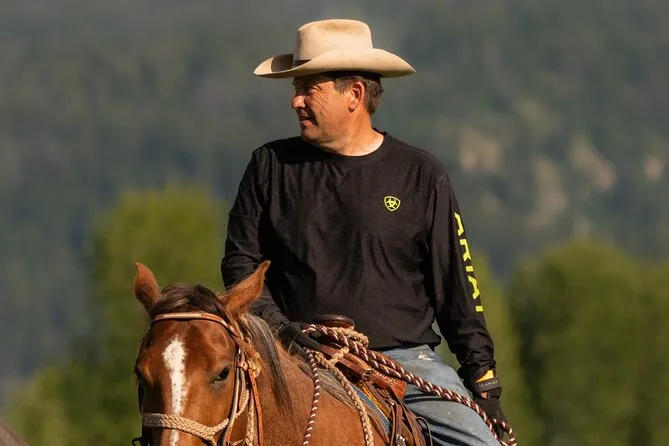Tu día incluye un caballo bien entrenado según tu nivel, casco de seguridad durante todo el paseo, guía local experto que conoce estos senderos al detalle, y la opción de paseos de 90 minutos, medio día o incluso una cena al aire libre bajo el cielo de Wyoming.