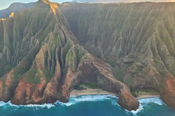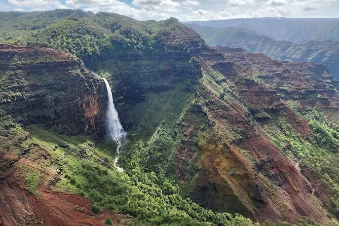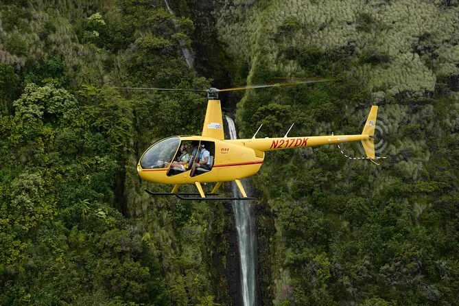 Volarás sobre la cascada Manawaiopuna “Jurassic”, el Cañón de Waimea, los acantilados de la Costa Nāpali y el monte Waialeale.