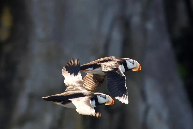 Podrás ver ballenas, nutrias marinas, leones marinos, frailecillos y otros animales marinos durante el tour.