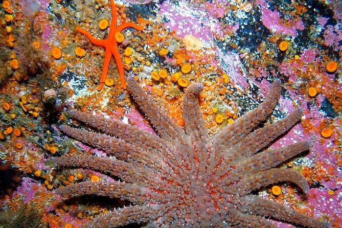Podrás ver estrellas de mar, cangrejos, anémonas, peces pequeños y a veces focas comunes durante el tour guiado.