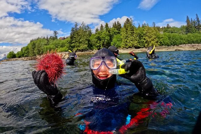 Tu día incluye traslado ida y vuelta desde los muelles del crucero en el centro de Ketchikan, uso completo del equipo de snorkel (con trajes gruesos), instrucciones detalladas de guías locales expertos durante la hora de tour en Mountain Point y bebidas calientes para entrar en calor antes de regresar al pueblo.