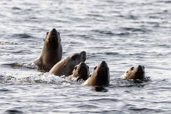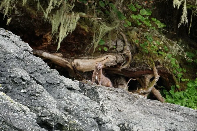 Podrás ver águilas calvas, nutrias de río, ciervos negros de Sitka, estrellas de mar, focas, leones marinos, marsopas, ballenas (incluyendo orcas) y varias aves.