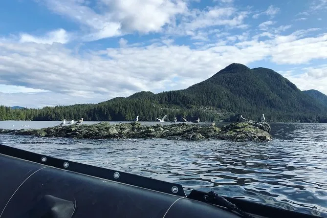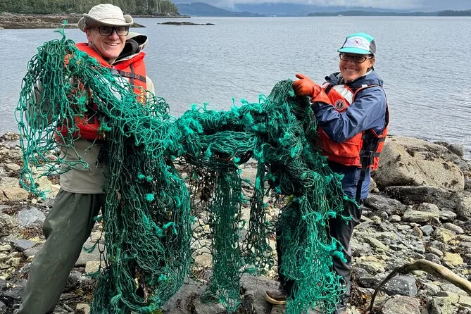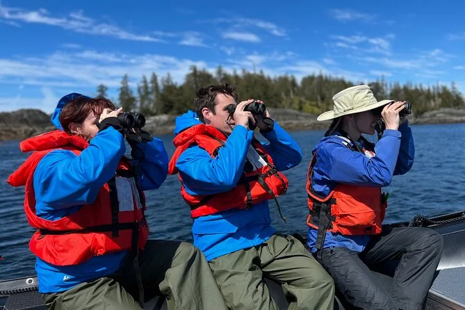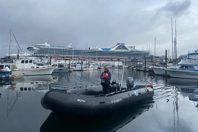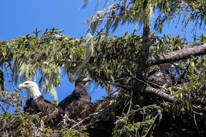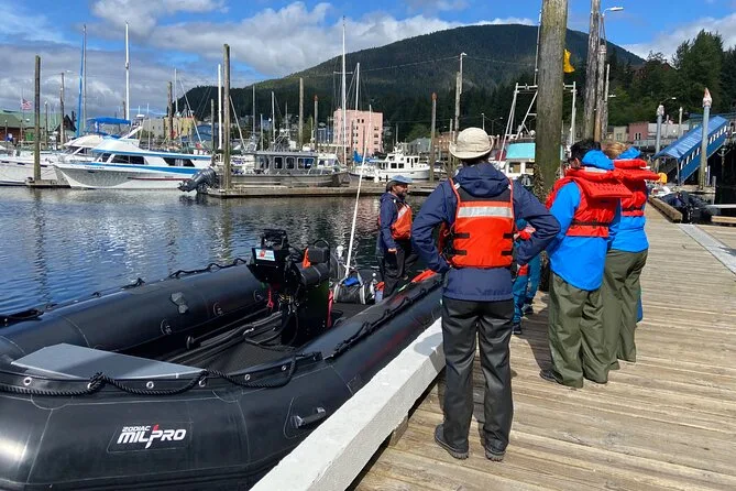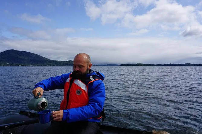 Tu día incluye transporte desde los muelles del centro si lo necesitas (solo avísalo con anticipación), ropa impermeable completa con botas y bolsa seca para tus cosas, chalecos salvavidas aprobados por la USCG para tu seguridad, además de café o té caliente y un snack ligero mientras exploras las aguas de Ketchikan en busca de fauna antes de regresar al Thomas Basin Boat Harbor.