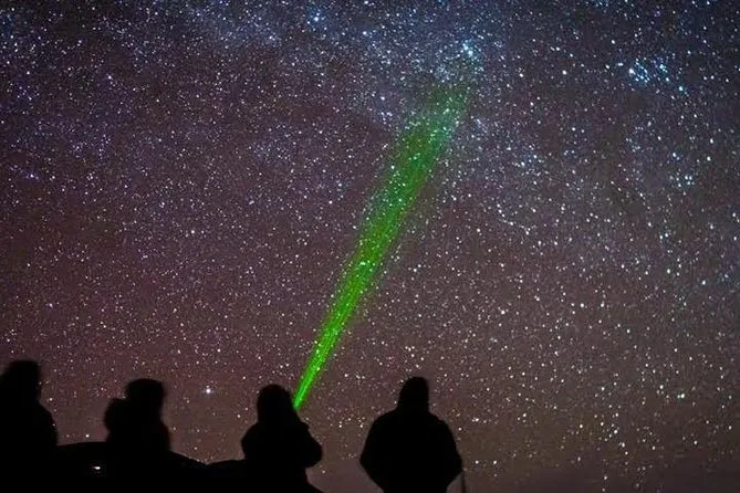 No se usan telescopios; los guías señalan estrellas y constelaciones con punteros láser.