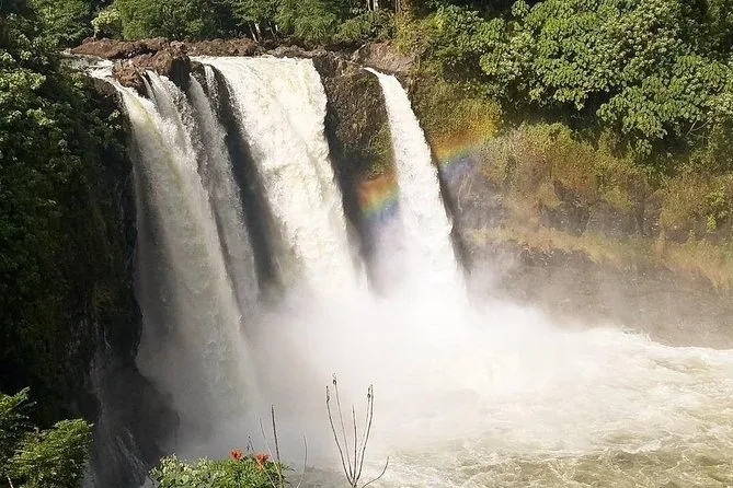 Tu día incluye recogida en Hilo o encuentro en el Centro de Visitantes Onizuka (con posible recogida en Kona para grupos), entradas para todas las paradas incluyendo Rainbow Falls si sales desde Hilo, pausa para aclimatarse a 9,000 pies, acceso a la cima de Mauna Kea en vehículo hasta 13,796 pies para ver el atardecer sobre las nubes, observación de estrellas guiada con punteros láser (sin telescopios), y uso de chaqueta abrigada durante toda la aventura antes de regresar de noche.