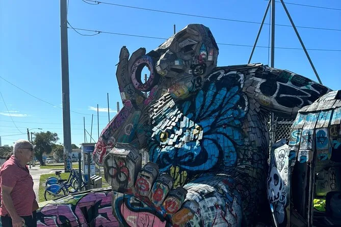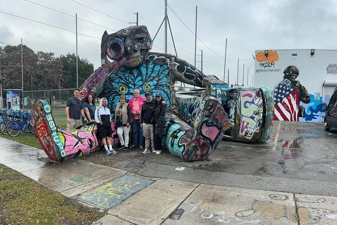 Después visitamos Wynwood Walls—tantos colores que al principio casi te duelen los ojos. Nuestro guía conocía la historia detrás de cada mural (el homenaje a Kobe Bryant me hizo detenerme un rato). Había salpicaduras de pintura en la acera y un leve olor a spray que se queda contigo incluso después de irte. La gente tomaba fotos, pero también se quedaba mirando esas paredes enormes, tratando de absorberlo todo.
