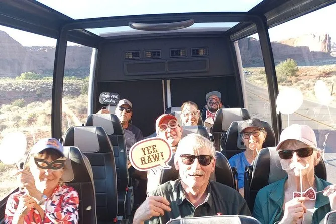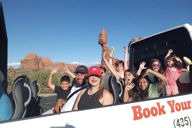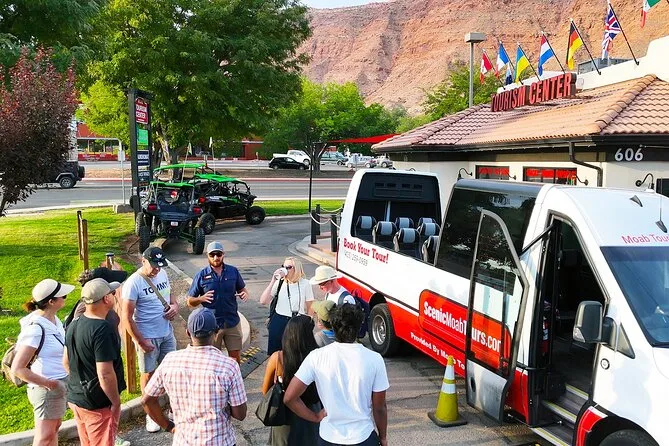 Tu día incluye encuentro en el centro de Moab para un check-in fácil, salida con guía en una van panorámica (techo abierto si el clima lo permite), entradas al parque incluidas y snacks y bebidas durante las paradas. Se combinan caminatas cortas en grupo antes de regresar juntos a la ciudad.