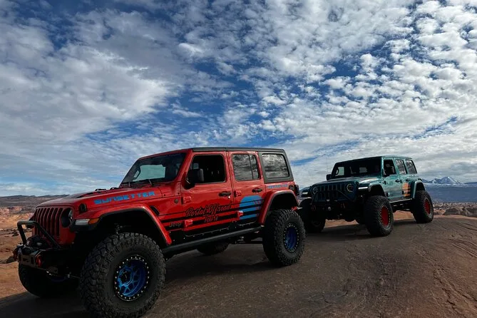 Agárrate fuerte mientras tu Jeep privado sube por Hell’s Revenge Trail con un guía local al volante. Descubre huellas reales de dinosaurios en la roca roja y detente en un mirador sobre el río Colorado con vistas a la parte trasera de Arches. Con aire acondicionado o calefacción y agua fría, sentirás la aventura sin perder la comodidad, llevándote recuerdos que perduran mucho después de sacudir el polvo de tus zapatos.