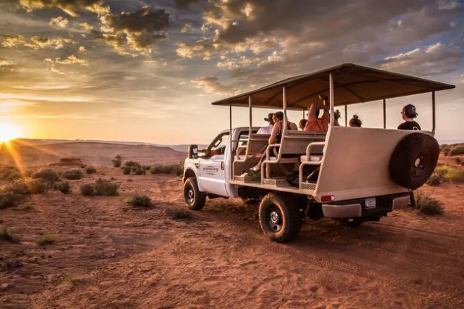 Tu día incluye transporte en una camioneta 4x4 abierta y con sombra desde Page, entradas para Secret Antelope Canyon y Horseshoe Bend con acceso privado por tierras Navajo, y todos los permisos necesarios—solo llega listo para explorar y disfrutar antes de regresar al pueblo.