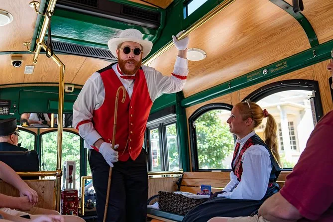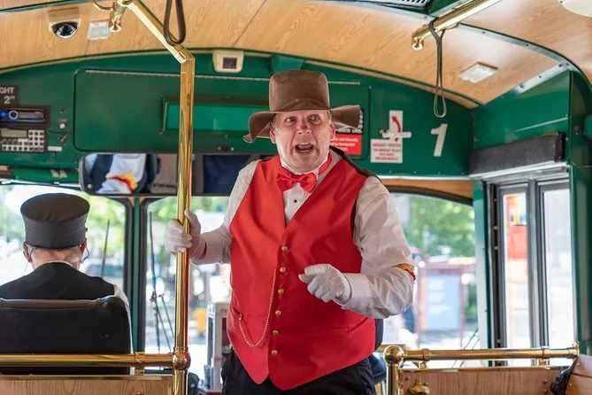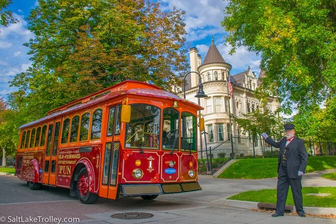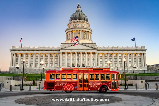 Tu día incluye un espectáculo musical y turístico a bordo de un tranvía clásico con tres animados guías teatrales. Además de sus relatos (y muchas risas), recibirás refrescos en botella y snacks Cracker Jacks mientras pasas o te detienes en sitios históricos como Temple Square, Capitolio de Utah, Catedral de la Madeleine, Tabernáculo, Beehive House y más, antes de regresar al centro al final del recorrido.