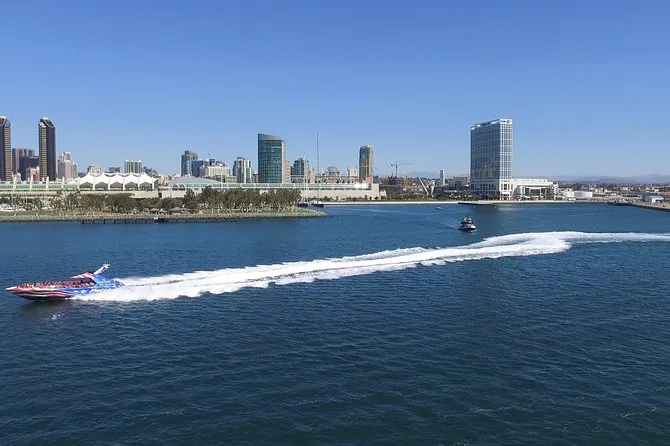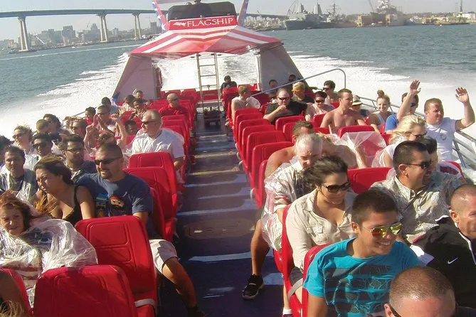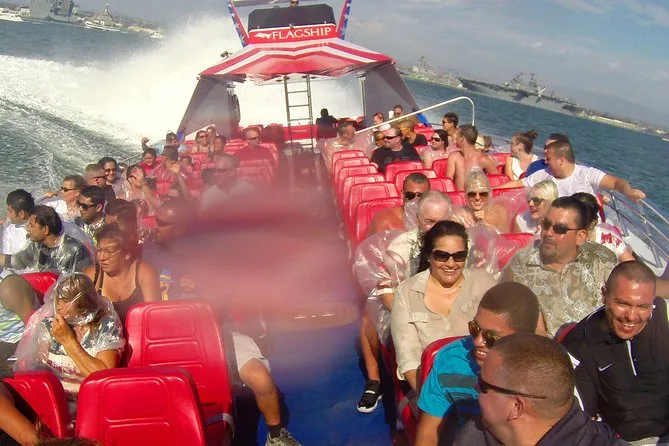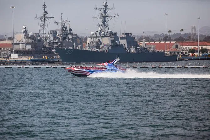 Tu entrada incluye un paseo de 30 minutos en jet boat de doble motor por San Diego Bay con ponchos de plástico y bolsas ziplock para mantenerte seco. Disfrutarás de vistas del waterfront como el skyline del centro, el portaaviones U.S.S. Midway, el Star of India y otros barcos del Museo Marítimo, la base aérea naval North Island y el puente Coronado, para regresar a tierra firme con una sonrisa tras tantos giros.